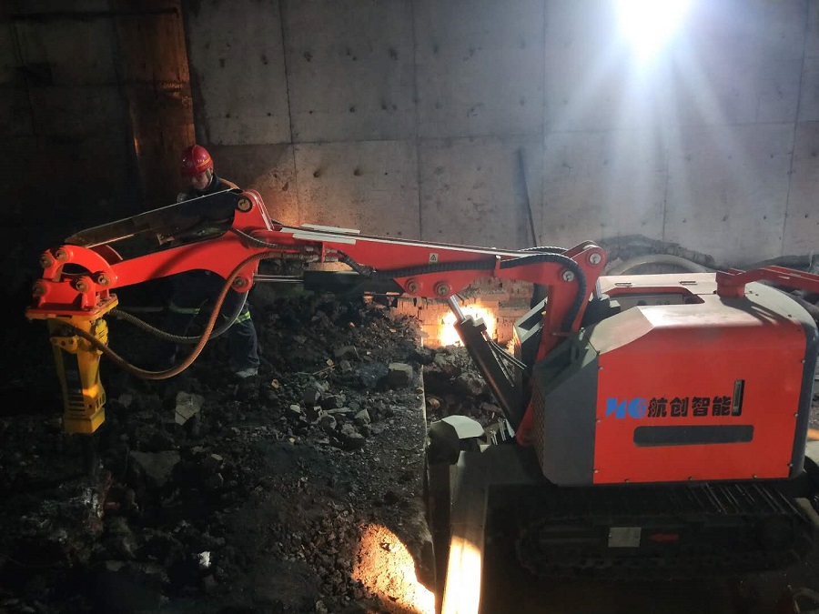 破拆機器人在銅鉛鋅企業(yè)可用來清陽極爐口,修澳爐,清理PS轉(zhuǎn)爐內(nèi)襯和余熱鍋爐清灰。在底吹和側(cè)吹爐煉銅廠用來清理爐口、煙道和溜槽,遙控作業(yè),操作安全,提高爐窯利用率。