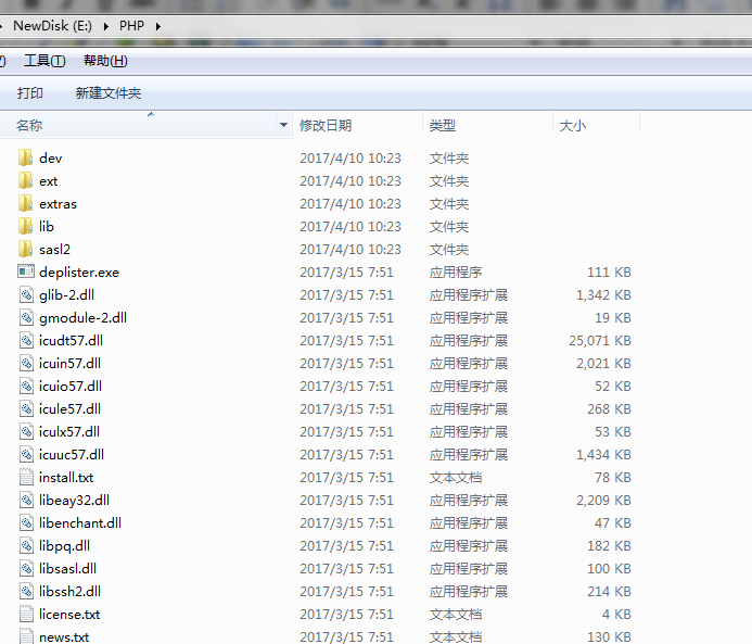 然后將其中的“php.ini-development”文件復(fù)制一份,將副本重命名為“php.ini”,