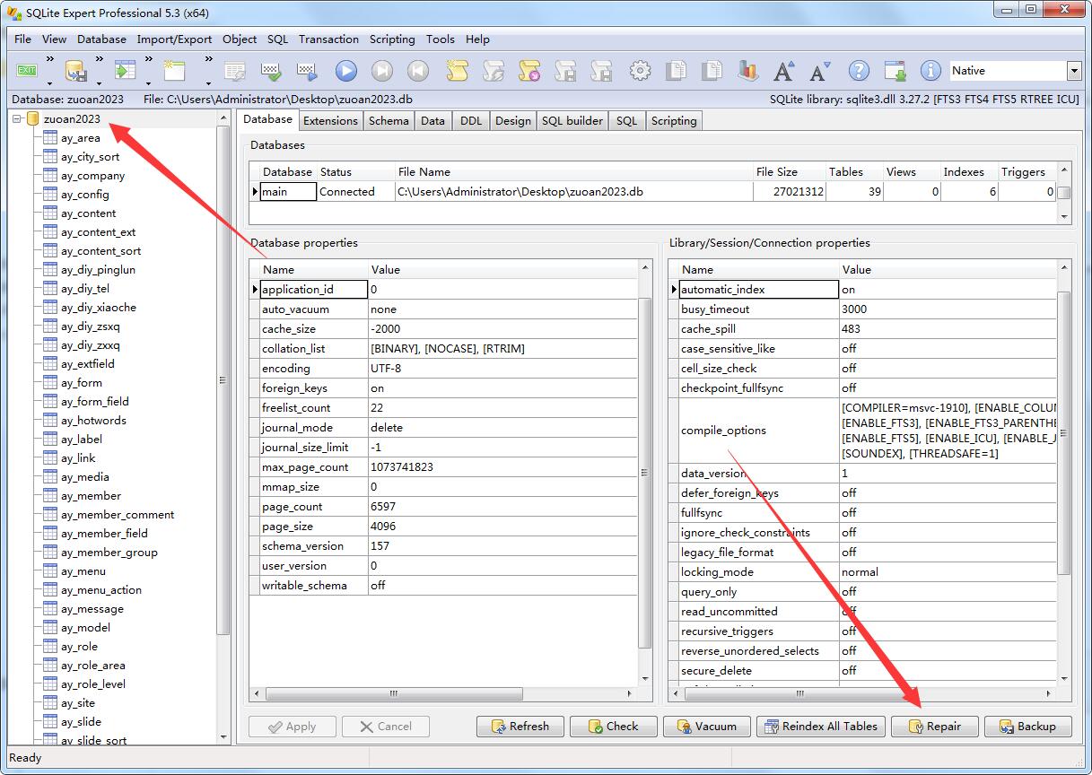 2:打開軟件,導入數(shù)據(jù)庫,選擇修復 按鈕Repair。